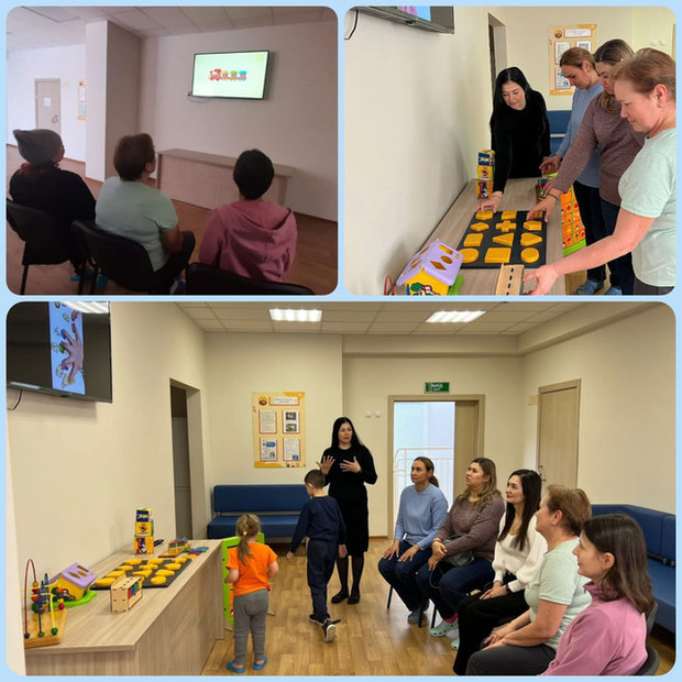 В «Школе родителей» начала работать новая форма обучения с использованием интерактивных и коммуникативных технологий. В то время, пока их дети занимаются, родители продуктивно проводят время, под руководством специалистов или самостоятельно изучают видеоролики медиатеки познавательного, развивающего и коррекционного характера.