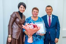 С профессиональным праздником учителей поздравил и глава НМР, мэр Нижнекамска Рамиль Муллин. В честь праздника лучшие педагоги получили награды из рук главы Нижнекамского муниципального района, среди которых педагог дополнительного образования Центра детского творчества, руководитель объединения "Акварель" Фархуллина Гульназ Вакыйфовна.