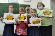 Педагог Илларионова У. В. поставила цель заинтересовать учеников в создании декоративной аппликации из природных материалов в смешанной технике: фломастеры + листья деревьев.
