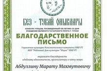 Педагог дополнительного образования МБУ ДО "ЦДТ" НМР РТ, руководитель школы ведущих "СӘЛӘТ" - АБДУЛЛИН МАРАТ МАХМУТОВИЧ принял участие в качестве жюри в районном конкурсе чтецов "БЕЗ - ТУКАЙ ОНЫКЛАРЫ".