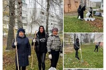 С отличным настроением сотрудники нашей школы вышли на очередной средник по очистке прилегающей к зданию территории, собрали остатки листвы, а заодно и подышали свежим воздухом????????