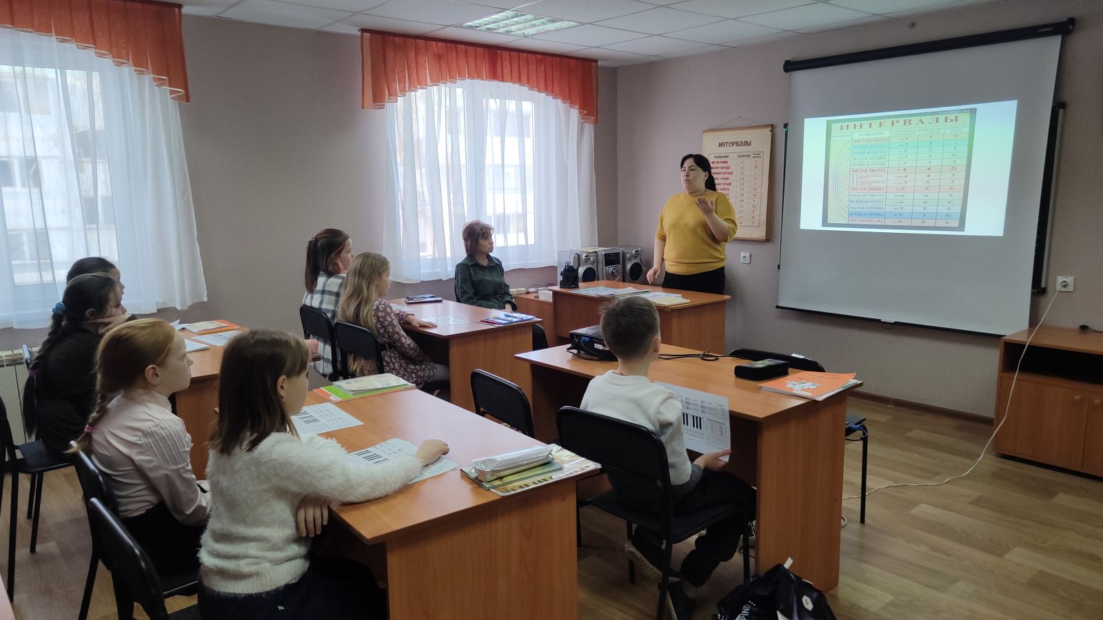 Открытый урок по сольфеджио "Формы работы с интервалами" с учащимися 2(8) класса провела преподаватель Самойлова Ольга Дмитриевна.