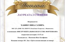 Поздравляем ученицу фортепианного отдела ДМШ №1 Хабибулину Самиру с лауреатством II степени в I Международном фестиваль-конкурсе «Триумф успеха»!