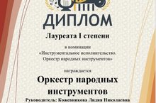Поздравляем Оркестр народных инструментов ДМШ №1 с лауреатством I степени в VI Международном фестиваль-конкурсе детского, юношеского и взрослого творчества «Art-Олимп»!