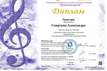 Поздравляем обладателя диплома Гран-при V Всероссийской дистанционной олимпиады по музыкальной литературе «Музыкальный кругозор» Спирчену Александру!