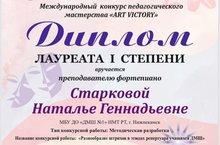 Поздравляем преподавателя фортепианного отдела ДМШ №1 Старкову Наталью Геннадьевну с лауреатством I степени в Международном конкурсе педагогического мастерства «Art victory»!