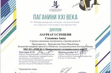 Поздравляем ученицу оркестрового отдела ДМШ №1 Сахапову Анну с лауреатством I степени в III Международном конкурсе исполнителей на струнно-смычковых инструментах «Паганини XXI века»!