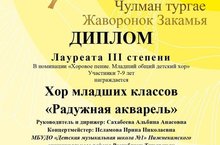 Поздравляем хор младших классов ДМШ №1 «Радужная акварель» с лауреатством III степени в Открытом Всероссийском вокально-хоровом конкурсе «Чулман тургае»!