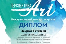 Поздравляем ученицу фортепианного отдела ДМШ №1 Сабирзянову Зарину с лауреатством I степени в Международном конкурсе искусств «Перспектива Art»!