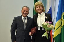 За большой вклад в развитие культуры и многолетний добросовестный труд почётное звание «Заслуженный работник культуры Республики Татарстан» было присвоено сегодня преподавателю оркестрового отдела ДМШ №1 Островской Римме Ханифовне.