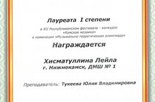 1. Хисматуллина Лейла - лауреат I степени!