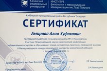 1 Апреля в г.Казань прошла Международная научно-практическая конференция "Музыкальное искусство и образование: теория, методология, практика", где наш преподаватель Амирова Алия Зуфаковна прочитала свой доклад-статью на тему "Развитие вокальных навыков как педагогическая проблема". Решением жюри было принято на месте отдать в печать статью Алии Зуфаковны организаторам конференции.