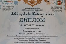 Талипова Миляуша- лауреат 3 степени, пр. Черных Л.К