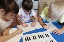 Учащиеся группы "Ранее эстетическое развитие" Губернаторова Алиса и Губернаторова Алеся (кл.преп-ля Нигматзяновой А. Н) осваивают музыкальную грамоту.