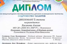 Закирова Элина -Дипломант I степени (кл.преп-ля Вафиной А.Р);