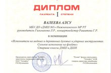 Валеева Алсу - Луреат III степени (кл. преп-ля Гильмановой Л.Р, концертмейстер Рашитова Г.Р.)