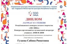 Стали известны результаты Конкурса презентаций по музыкальной литературе в рамках Республиканского конкурса детского творчества "100/ЛИЦА" (г.Казань).