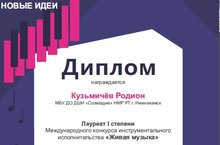 Поздравляем Газизуллина Динара - Лауреата I степени, Кузьмичёва Родиона - Лауреат II степени, Камалетдинова Амира - Лауреата II степени, Алексееву Киру и Алексееву Лиру (дуэт) - Лауреата II степени. Подготовили конкурсантов преподаватель Бикмурзина Е.А. (флейта, саксофон) и концертмейстер Иванова С.Г.