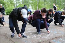 Цель акции – привлечь внимание властей, общества и СМИ к проблеме легальных детоубийств – абортов. Студенты колледжа нарисовали мелками 2300 человечков на асфальте по числу невинно убиваемых младенцев в день.