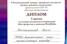 По приказу Министерства образования и науки РТ 5-6 апреля 2018 года на базе ГАПОУ «Нижнекамский агропромышленный колледж» был подготовлен и проведен республиканский этап Всероссийской олимпиады профессионального мастерства по специальности среднего профессионального образования «Техническое обслуживание и ремонт автомобильного транспорта» среди обучающихся профессиональных образовательных организаций Республики Татарстан.