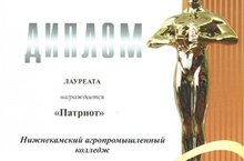 Лучшая военно-патриотическая организация – в НК АПК 17.04.2015 Лучшей военно-патриотической организацией г.Нижнекамска признан клуб «Патриот» ГАПОУ «Нижнекамский агропромышленный колледж». На ежегодной церемонии награждения победителей ежегодной студенческой премии Нижнекамского муниципального района «Студент года - 2014», проводимой ММОО «Нижнекамский Союз студентов» при поддержке МБУ «Управление по делам молодежи и спорту» исполнительного комитета Нижнекамского муниципального района РТ, колледж получил диплом «Лучшая военно-патриотическая организация-2014».