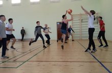 После небольшого перерыва начался матч по баскетболу. Не откладывая дел в долгий ящик, молодежь колледжа стала уходить в отрыв. Во втором тайме команда педагогов попытались навязать свою игру и свела к минимуму свое отставание.Дальше пошла равная борьба, при которой студенты старались контролировать ситуацию на площадке, а учителя - найти "дыры" в обороне соперника. С переменным успехом это получалось у обеих команд. Особенно под кольцом. Тем не менее, педагоги взяли реванш, и встреча закончилась с небольшим перевесом в их пользу.