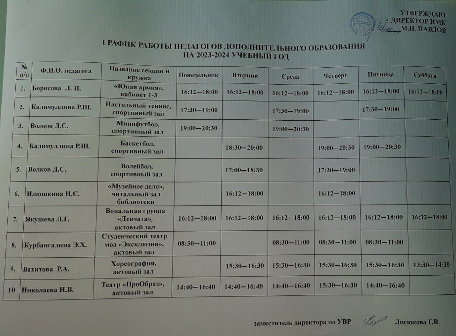 График работы педагогов дополнительного образования на 2023-2024 уч.год