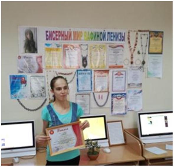 В течение двух недель в читальном зале библиотеке колледжа была организована персональная выставка студентки гр. ПС-12 «Бисерный мир Вафиной Ленизы». Бисерным рукоделием Лениза начала заниматься в 2012 году у педагога дополнительного образования Дворца творчества детей и молодежи им. И.Х.Садыкова Нугмановой И.М. Шаг за шагом она осваивала новую для себя науку – науку бисерного искусства. Верится, что впереди у Ленизы будут творческие успехи и достижения. Удачи, тебе Лениза!