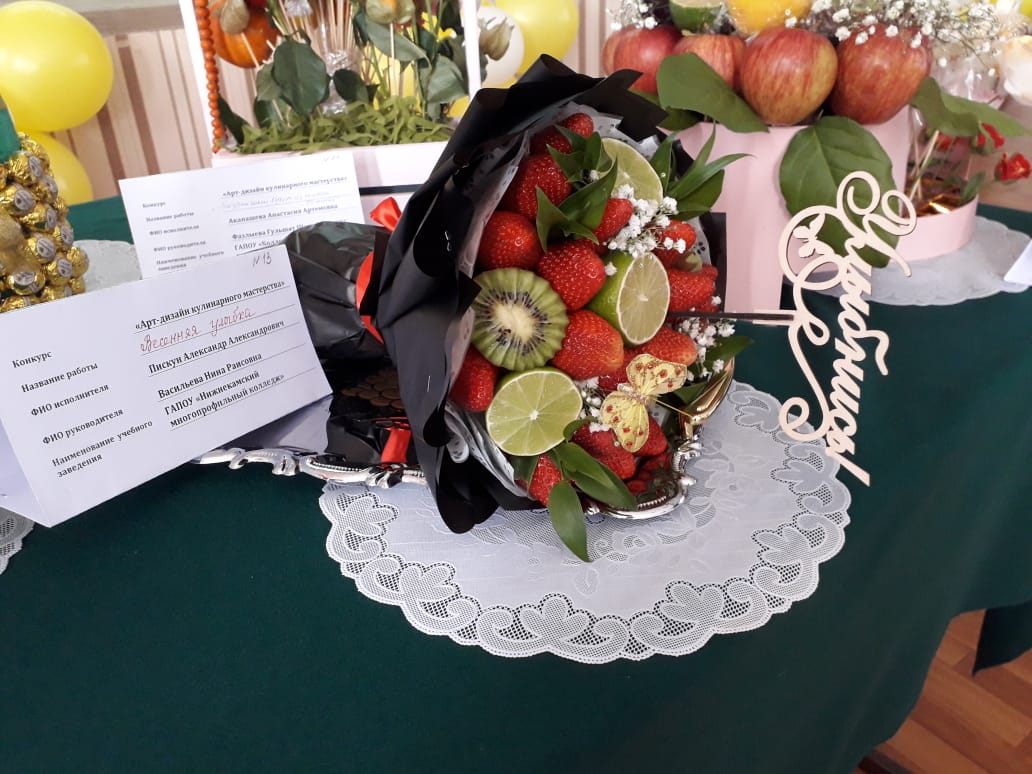 Несомненно, новым трендом в области пищевых изделий и флористики являлся конкурс «Фруктовый букет», в изготовлении которого впервые состязались представители 18 учебных заведений РТ и в итоге представили красочную палитру букетов из фруктов с романтичными названиями. Ребята с ограниченными возможностями здоровья из 12 образовательных организаций изготавливали фруктово-ягодный или конфетный букет и успешно справились с условиями конкурса.