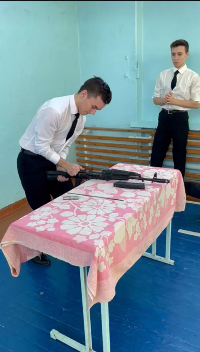 На финальном этапе наши ребята в праздничной форме продемонстрировали военно-строевую подготовку - чётко прошлись строевым шагом с песней, безупречно выполняли перестроения, расчёты и повороты. Затем сдавали норматив разборки и сборки автомата.