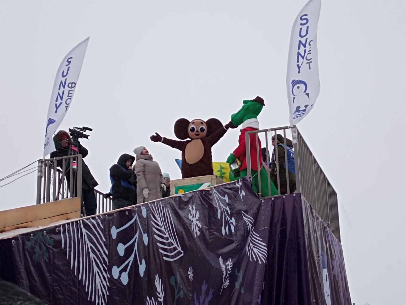 Сразу, недолго думая, возникла идея воплотить сценический образ Чебурашки из нового художественного фильма «Чебурашка», сцену, где он выпрыгивает из ящика с апельсинами. А для создания на площадке атмосферы веселья был добавлен его друг крокодил Гена.