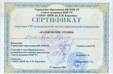 VIII муниципальная научно-практическая конференция «Казаковские чтения» 20.04.2021