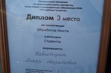 В г. Казани прошел Региональный чемпионат по профессиональному мастерству среди людей с инвалидностью "Абилимпикс 2018", где студенты "Нижнекамского индустриального техникума" приняли активное участие и заняли призовые места.