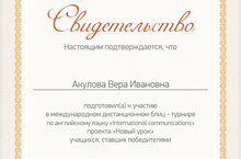 Студенты «НИТ» приняли участие в международном дистанционном блиц-турнире по английскому языку «International communications» проекта «Новый урок», под руководством преподавателя английского языка Акуловой В.И.