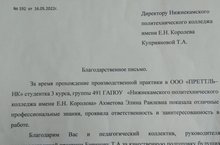Благодарю за положительный отзыв предприятие ООО " ПРЕТТЛЬ-НК" о прохождении производственной практики студентки третьего курса специальность Организация и управление перевозок на транспорте Ахметовой Элины. В отношениях с "ПРЕТТЛЬ- НК" я бы выделила главное-
