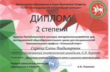 Поздравляем Скрипко Елену Владимировну с победой в Республиканском конкурсе методических разработок преподавателей общеобразовательного цикла для специальностей технологического профиля "Успешный старт"