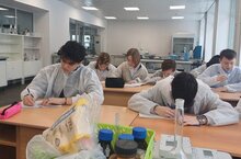 Сегодня студенты изучали органическую химию на примере крахмала, проводили качественную реакцию, делали наблюдения и писали выводы.
