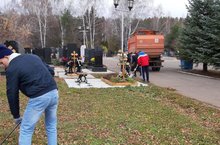 Администрация колледжа и группа 361 на уборке Аллеи Почетных граждан, ветеранов, первостроителей. Городское кладбище