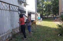 Решили покрасить наш старенький забор перед приёмкой колледжа.