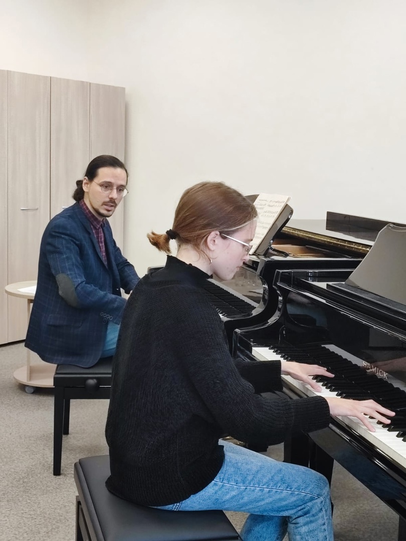 Опубликовано: 19.10.2023Сегодня студенты фортепианного отделения Нижнекамского музыкального колледжа - Закирова Камилла (II курс), Романова Аделя (II курс), Алишева Эльвина (III курс), Махиянов Нурислам (III курс) и Емашова Айгуль (IV курс) приняли активное участие в мастер-классе пианиста, преподавателя Казанской государственной консерватории имени Н. Г. Жиганова Малюты Даниила Глебовича.