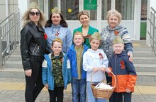 В предверии знаменатольной даты дети подготовительных групп №3,10 приняли участие в этой акции. Бутоньерки, выполненные своими руками, воспитанники нашего сада со словами благодарности за счастливое детство, за мир раздавали прохожим бабушкам и дедушкам.