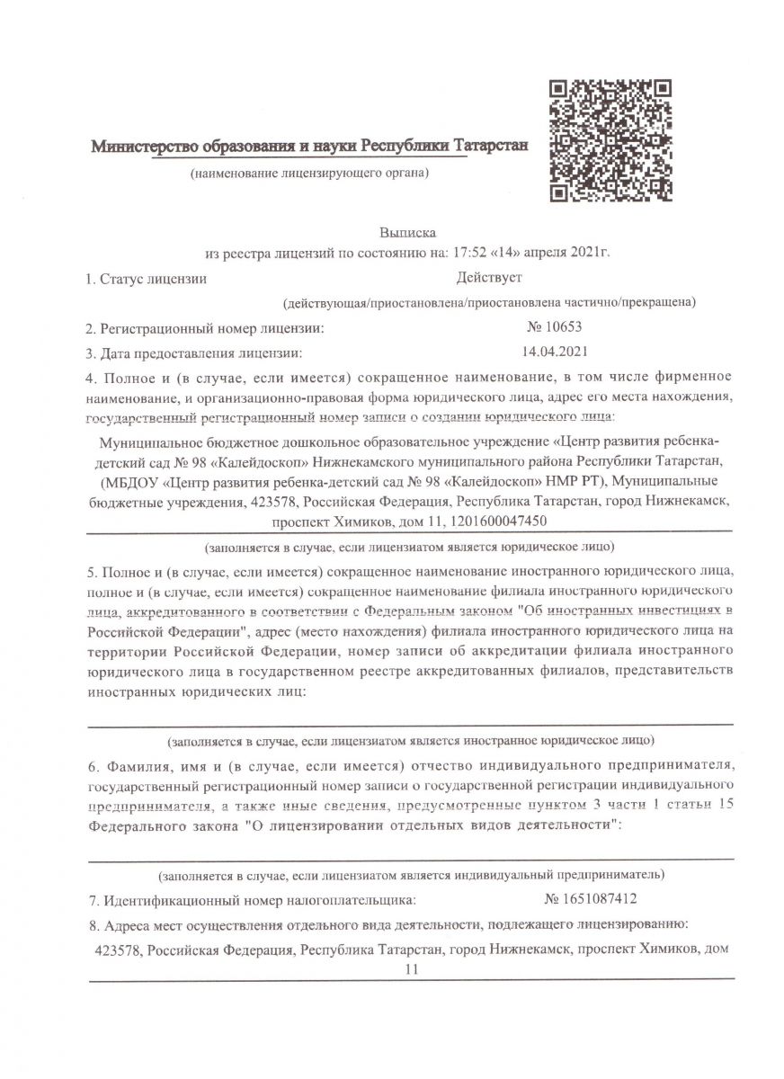 Короткое название: МБДОУ "Центр развития ребенка-детский сад № 98 "Калейдоскоп"» НМР РТ
