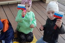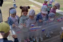Дети смогли показать какие они смелые, ловкие и быстрые, участвуя в играх: «Собери флаг» и «Ромашку».