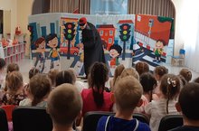 Ребенок — это самый беззащитный участник дорожного движения. И с каждым годом проблема безопасности на дорогах только увеличивается. Только всесторонний подход к проблеме безопасности на дороге поможет сократить количество происшествий с участием детей. Чтобы ребёнок легче усваивал основы безопасности дорожного движения, используйте разнообразные методы. В нашем детском саду сегодня ребята смотрели театральную постановку, которая помогла закрепить и продемонстрировать полученные знания по ПДД.