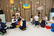Наш маршрут начался с секции "Программирование" – дети запрограммировали Bee-Bot Пчелу так, чтобы собрать звезды и добраться до финиша.