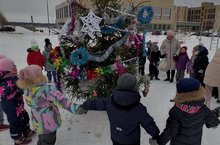 Сегодня воспитанники подготовительных групп совместно с педагогами украсили ёлку к новому году для жителей 34 микрорайона.