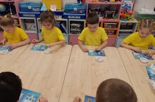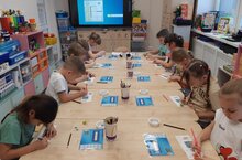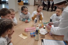Ребята попробовали себя в роли химиков. Рисовали на молоке, познакомились с понятием «Кляксография».