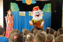 В рамках Года экологии театр кукол "Карнавал" представил воспитанникам прогимназии сказку "Подарок для солнышка". Волшебный мир забавных кукольных героев увлёк детей в интересное сказочное путешествие. А ростовая кукла вызвала несомненный восторг у зрителей. Наши дети навсегда запомнили, что нельзя собирать ягоды, грибы у дорог, у химических заводов...