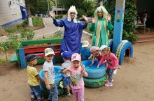 Нептун-бог морей и потоков. Сегодня в наш детский сад прибыл важный гость- царь Нептун и его подданная Водяная.Развлечение было проведено во всех группах на прогулке, Дети соревновались в ловкости, играли с водой, пели песни и рассказывали стихи о воде и ее пользе.