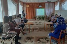 В период творческих отчётов все педагоги нашего ДОУ показали занятия с воспитанниками, на которые были приглашены и родители. В младшей группе "Почемучки" родители отправили детям видео письмо с загадками о животных. В средней группе "Аленький цветочек" мама Арины Е. исполнила роль бабушки. В подготовительной группе "Шаянкай" родители были членами жюри игры КВН, а группа "Колокольчики" отправилась по морю за кладом. Роль пирата капитана Крюка исполнила мама Мадины С. Все занятия прошли на хорошем уровне, дети показали знания, отзывы родителей и педагогов положительные.